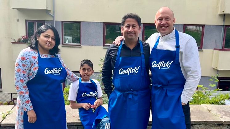 Familien Karkhanis sammen med mentor Christopher Haatuft.