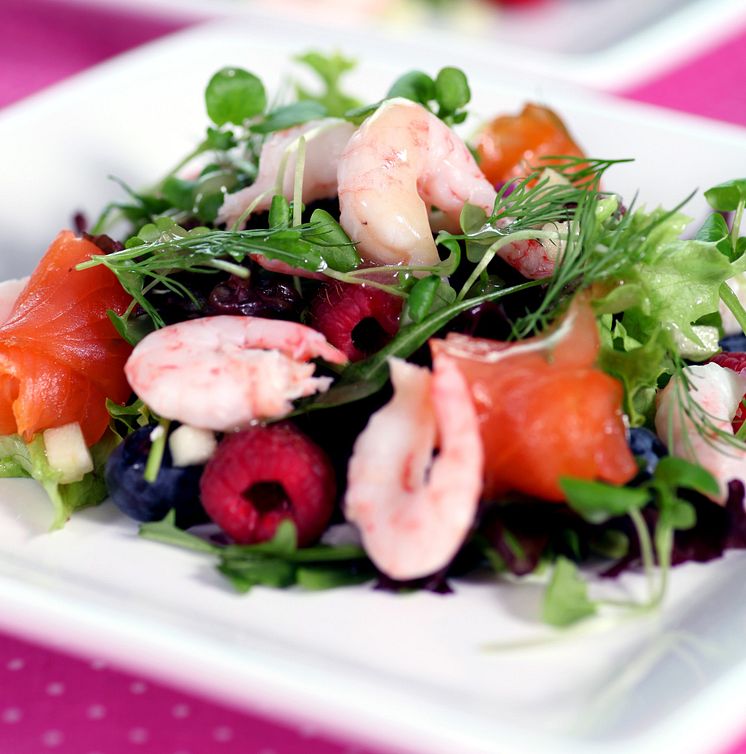 https://godfisk.no/oppskrifter/laks/sommersalat-med-reker-rokt-laks-bringebar-og-blabar/