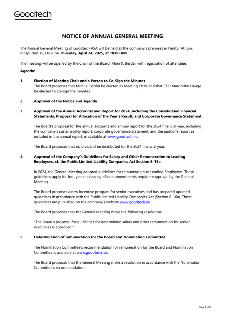 Goodtech ASA - Call notice Annual General Meeting w Registration Form.pdf