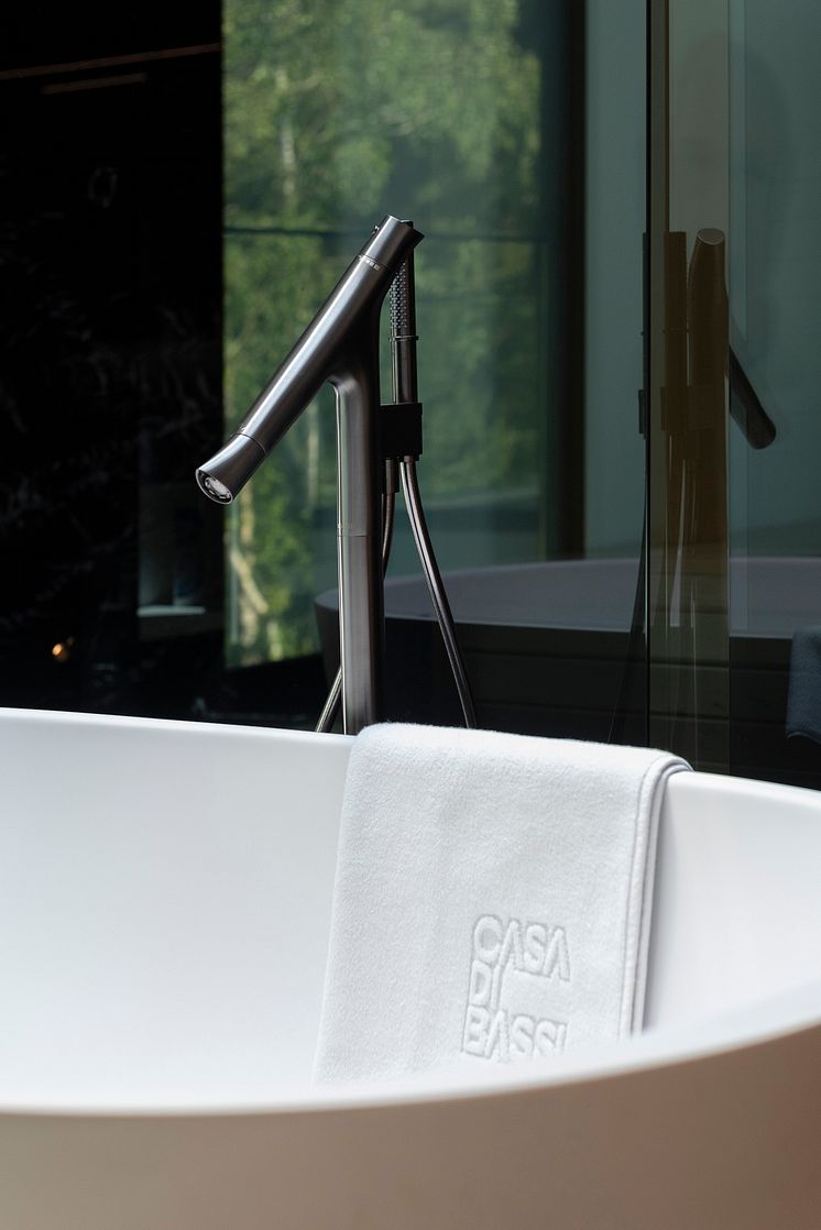 Badekararmaturet fra AXOR Starck Organic i børstet sort krom.