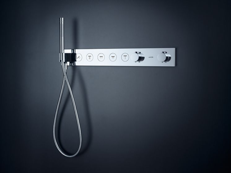 AXOR Termostatmodul Select: Innebygd løsning med trykknapper styrer dusjen intuitivt.