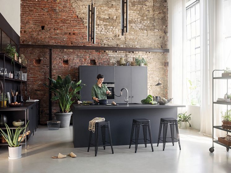 For enda mer komfort rundt kjøkkenvasken fås hansgrohe Aqittura M91 med uttrekkbar tut.