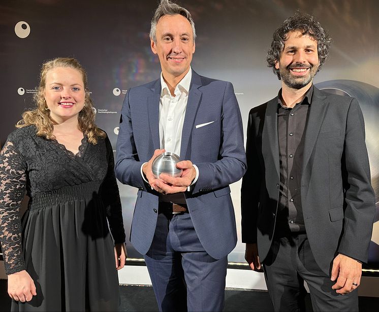 Fra venstre: Rebecca Weigold, sjef i Green Company Hansgrohe SE, Hans Jürgen Kalmbach, CEO i Hansgrohe SE og Steffen Erath, Head of Innovation & Sustainability i Hansgrohe SE.