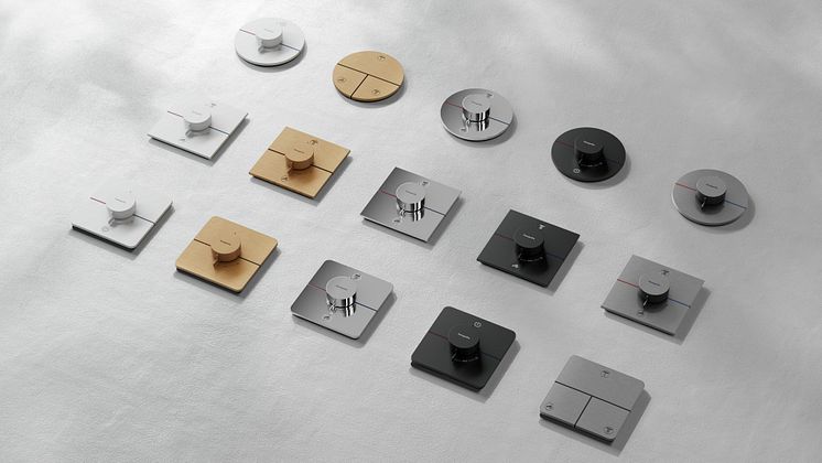hansgrohe ShowerSelect Comfort er tilgjengelig i tre geometriske former (runde, firkantede og med avrundede hjørner) og de fem FinishPlus-overflatene krom, matt sort, matt hvit, børstet bronse og børstet sort krom. Kombinasjoner gjør det mulig å styre opptil fire uttak.