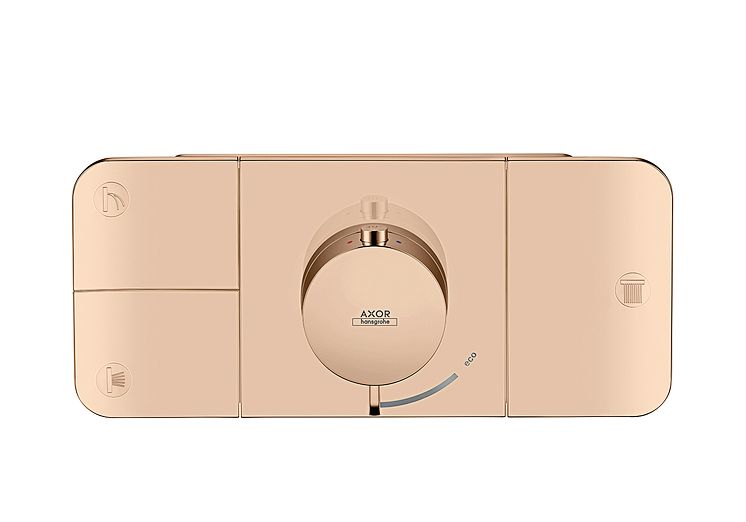 Funksjon og design går opp i en høyere enhet når AXOR One velges til dusjområdet. Slå på og av vannet, juster vannmengden og reguler temperaturen på ett og samme sted i et minimalistisk, gjennomtenkt design. Design av Barber & Osgerby.