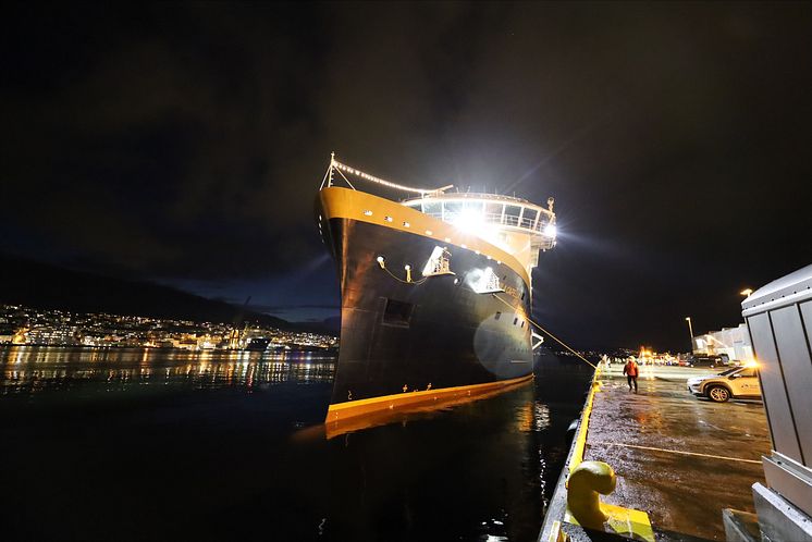 At 17.30 the 24st of November Havila Capella arrived at the quay in Bergen. The first new ship for the Bergen-Kirkenes-Bergen voyage in eighteen years!