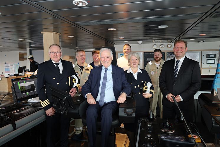 From the left: Brynjard Ulvøy, captain, Anton Abrahamsen, Arnstein Larsen, Per Sævik, owner, Claus Andreassen, Else Kristine Tjessem Hotel Manager, Stephan Rossedalen, Bent Martini, CEO