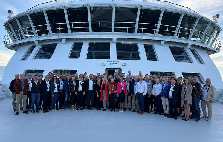 Deltakerne som var om bord på Havila Castor under konferansen om Stad skipstunnel.