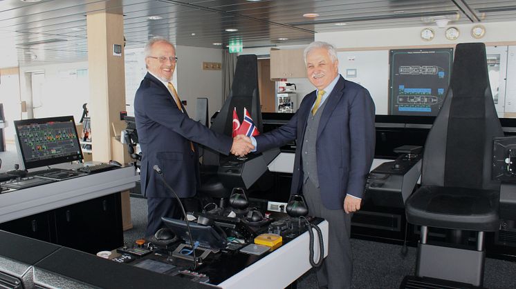 Styreleder og hovedaksjonær Per Sævik var med på den offisielle overtakelsen på verftet i Tyrkia.