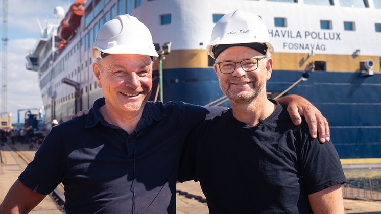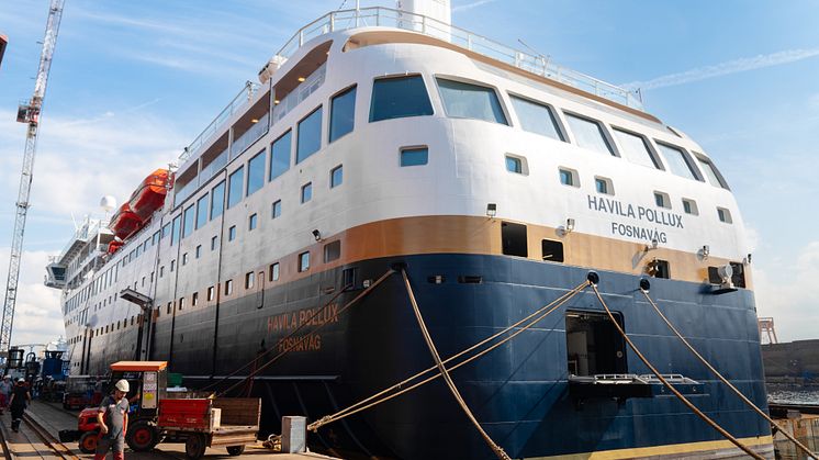 - Mannskapene våre flytter straks om bord, og nå skal vi få tollklarert nødvendig utstyr før den siste sjekken. Deretter kaster Havila Polaris loss og setter kursen mot Bergen. Avhengig av værforholdene vi møter hjemover, tar det 10 til 12 dager å ta skipene hjem til Norge. Det betyr at det blir hektiske dager i vente for å klargjøre skipene og gjøre den siste finpussen før vi kan ønske de første gjestene velkommen om bord til jomfruturene med Havila Polaris og Havila Pollux, sier Martini.