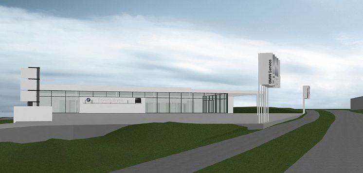 Illustrert: Bavaria Bryne planlegger et godt synlig, toppmoderne 1 700 kvm store bilanlegg på Håland.