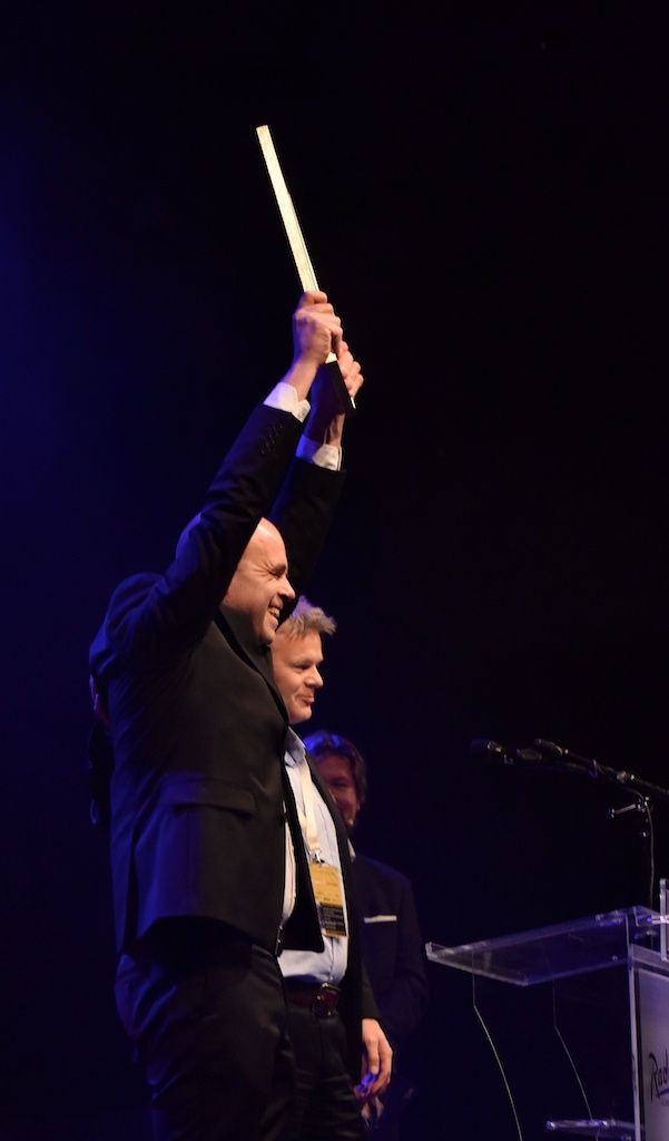 Christian Egede-Nissen og Trygve Simonsen tar i mot prisen på vegne av Hertz Bilutleie.