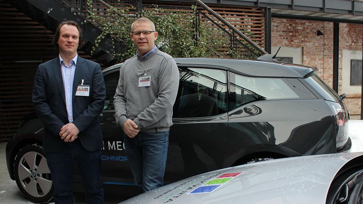 Hertz BilPool og Vestaksen Eiendom går sammen om å etablere en bildelingsordning i Drammen sentrum. Eivind Thorne, leder i Hertz BilPool (t.v.) og Morten Hotvedt, prosjektsjef i Vestaksen Eiendom har tro på dette som en løsning på transportutfordringer.