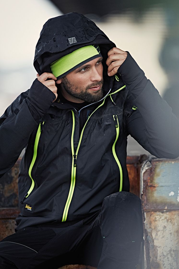 Regnvær? Ikke noe problem. Du kan bare fortsatt arbeide med fortsatt god bevegelsesfrihet i denne elastiske tre-lags vanntette skalljakken med tapet sømmer. Følger EN 343.
