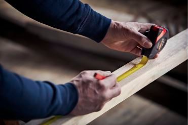 Målebånd i stål med dobbeltsidig gradering for presis måling. Gult stålmålebånd gradert i millimeter med svært nøyaktig