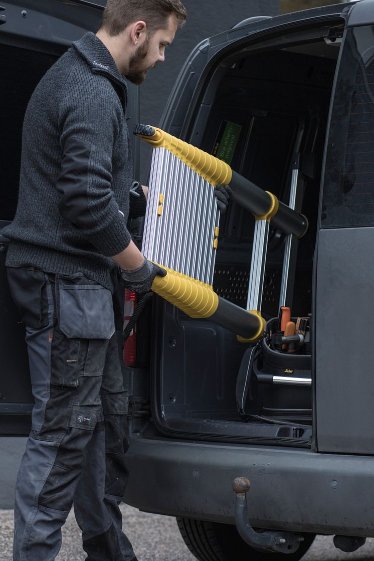 Teleskopstige for profesjonell bruk som er enkel å transportere og oppbevare. Stigen kan brukes både inne og ute. Perfekt for serviceteknikere som arbeider på trange områder og er ofte på farten. Stigefoten øker stabiliteten og teleskopstigen har en myk lukkemekanisme som reduserer risikoen for klemskader. Stigen må ikke trekkes helt ut, noe som betyr at du kan bruke den i akkurat den lengden du trenger. Aluminium sørger for god slitestyrke.