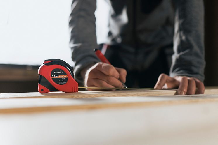 Siden standard tømmerlengder i Norden er 5,4m, kommer den vanlige 5-meteren litt til kort. Et av våre mest populære målebånd, som tidligere har vært tilgjengelig i 5 meter og 8 meter lanseres nå i målebånd på 5,4 m. 5,4 meter-båndet er tilpasset vanlige trelastlengder.