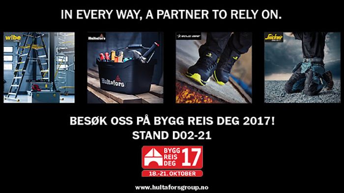 Hultafors Group Norge representerer merkevarene Snickers Workwear, Solid Gear, Toe Guard, Dunderdon Workwear, Hultafors og Wibe Ladders. Vi står klare på Bygg Reis Deg for å ta en prat om en eller flere av disse.