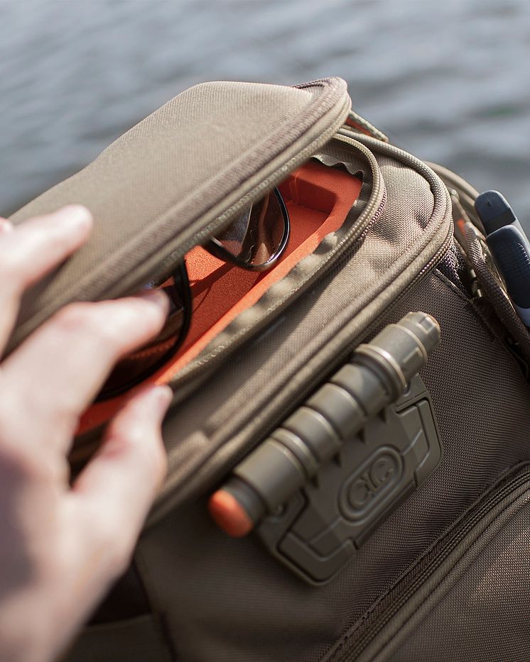 Wild River Recon er en kompakt fiskeryggsekk og er en mindre versjon av vår Wild River Nomad®. Den har et integrert LED-lyssystem som gjør at du kan se inn i ryggsekken eller på arbeidsflaten etter solnedgang. Nettinglommer gjør det enkelt å se innholdet. Sekken har dessuten brede, polstrede skulderremmer som gir ekstra komfort. Beskyttende regntrekk er inkludert.