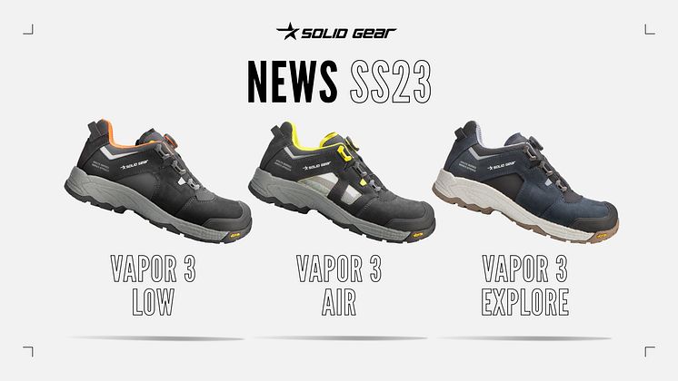 Vapors tredje generasjon er oppgradert med flere materialer og komponenter som alle har høy ytelse. Overdelen har en kombinasjon av LWG-sertifisert skinn og ripstop-tekstil. Verneskoen er utstyrt med BOA® Fit System for en optimal passform, fôr i 3D-mesh laget av resirkulert polyester og ETPU mellomsåle med energiretur og demping, som reduserer trykket på bena over tid. Doble TPU-gelenker er integrert i mellomsålen for å opprettholde en unik stabilitet og vridningsstivhet. Yttersålen i gummi fra Vibram® er meget slitesterk med gode anti-skli egenskaper. Innersålen fra OrthoLite®, som er spesialdesignet for Solid Gear sin lest, har overlegen energireturegenskap og er hovedsakelig laget av resirkulerte materialer. ESD-funksjon i henhold til EN IEC 61340-4-3:2018.