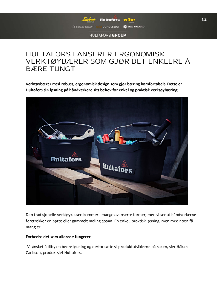 Verktøybærer med robust, ergonomisk design som gjør bæring komfortabelt. Dette er Hultafors sin løsning på håndverkere sitt behov for enkel og praktisk verktøybæring.