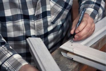 “Merkeblyanten er en kombinasjon av den tradisjonelle snekkerblyanten og en klassisk blyant. Ved å kombinere egenskaper fra disse får du en blyant med godt grep, uansett om du ønsker tegne tydelige linjer eller gjøre presisjonsmarkering,” sier Per.
