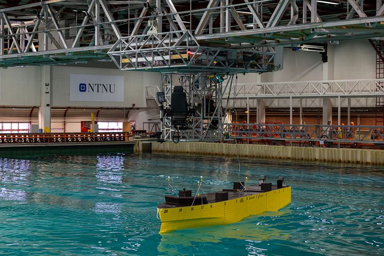 Hurtigrutens Sea Zero-konsept testes i havbassenget hos Sintef Ocean i Trondheim. Foto: Espen Mills / Hurtigruten