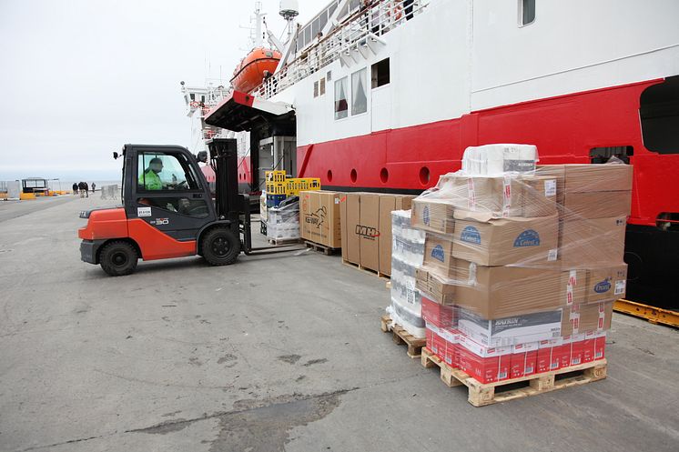 Gods lastes om bord på MS Vesterålen. Foto: Axel M. Mosler / Hurtigruten
