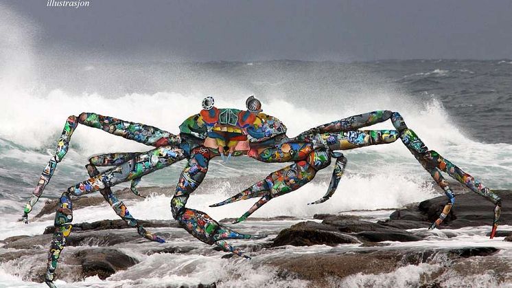 PLASTKRABBE: Kunstnere skal sammen med lokale ungdommer lage denne plastkrabben ved Atlanterhavsveien. FOTO: ILLUSTRASJON: EIRIK AUDUNSON SKAAR