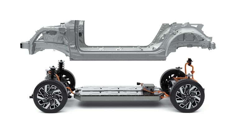 Plattformen øker også sikkerheten rundt batteripakken med en ramme av ultrahøyfast stål. Varmpressede stålkomponenter omgir denne strukturen for ytterligere rigiditet. Kollisjonsenergi absorberes effektivt som følge av absorberingssoner i chassis og karosseri, samt en sentral seksjon av batteripakken som er tett forbundet til bilens struktur.