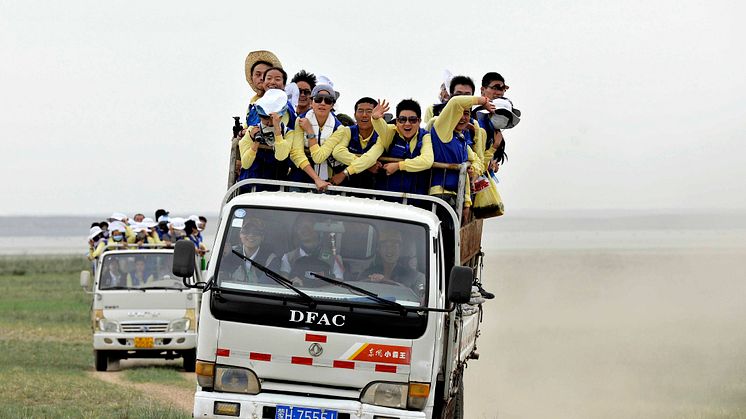 Billedtekst: Koreanske og kinesiske studenter deltar i prosjektet for å stoppe ørkenspredning i Mongolia