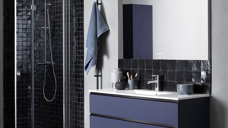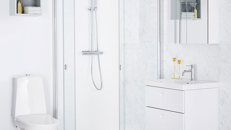 SYNC foldedører gjør det enkelt å komme inn i selv den trangeste nisjen. Servantskapet VISKAN GRIP finnes i bredder fra 40 cm opp til 120 cm. Perfekt for det lille badet.