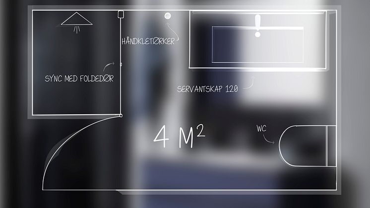 En av de store fordelene med SYNC foldedører er at du kan plassere et servantskap eller toalett helt inntil uten at dusjdørene kommer borti. Fold dørene inn mot veggen når dusjen ikke er i bruk.