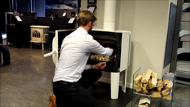 Om du følger anvisningen over, og tenner opp med et par store vedkubber vil det første ilegget vare en times tid. Når dette er brent til glør kan du åpne døren forsiktig og legge på mer ved. Et godt tips er å ha døren på gløtt et par sekunder før du åpner den helt. Da sørger trekket i pipa for at røykgasser fjernes fra brennkammeret og du unngår å få røyk ut i rommet.