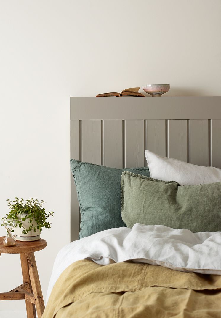 Veggen er malt i JOTUN SENS farge 0486 Silke og sengegavlen i JOTUN SENS fargen 1233 Mohair