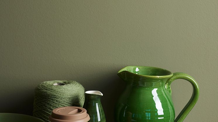 En base av nøytraler trenger ikke bety fravær av kulørte farger. Her ser vi kalkmalingen LADY Minerals 10342 Kalkgrå, i møte med den frodige grønne LADY 8469 Green Leaf.