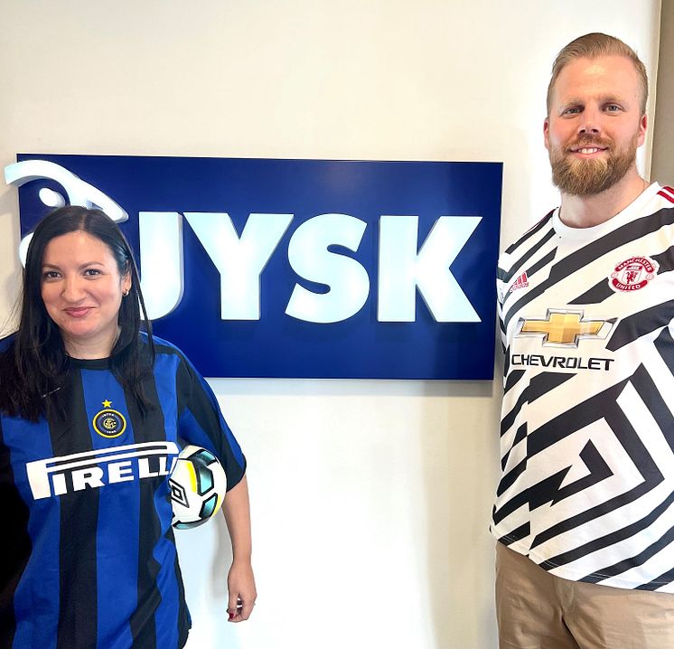 Kommunikasjonssjef Fatima Elkadi og Salg-og markedssjef Krister Andreassen under årets FotballtøyeFredag