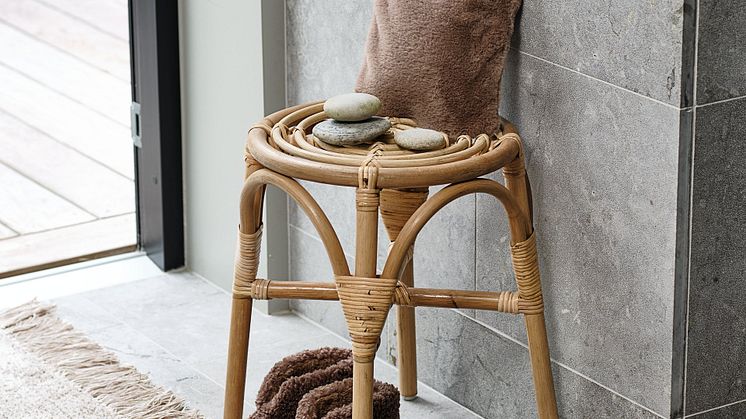 Når du er ferdig med velværebadet, kan du gå ut på badematten BRUNN. Materialet er mykt og avslappende for dine føtter. Forlat rommet med å tørke deg på det myke, beige stoffet til badehåndkleet NORA. Den vil etterlate deg avslappet fra topp til tå.