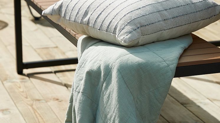 Kolleksjonen fra i år inneholder et bredt sortiment med spennende produkter fra vanntette puter til UV-resistente møbler. I tillegg er produktene enkle å rengjøre.