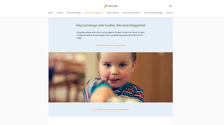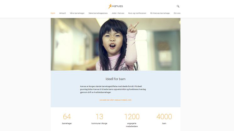 Barnehagestiftelsen Kanvas har lansert nye hjemmesider - kanvas.no. Daglig leder i Kanvas, Robert Ullmann, forteller at de har hatt tre hovedmål med de nye nettsidene. – Våre nye nettsider skal være en tydelig formidler for hva Kanvas står for, de skal gi kortfattet og lett tilgjengelig informasjon til alle våre målgrupper, og de skal være brukervennlige fra alle plattformer – ikke minst mobil. Og vi er godt fornøyd med resultatet, legger Ullmann til.