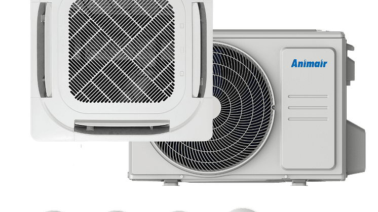 Animair 4-veis Kassett er en avansert og pålitelig varmepumpe, spesialtilpasset for nordiske forhold. Den monteres diskret i taket og sikrer optimal luftspredning via fire ulike utblåsninger, noe som gjør den perfekt for større arealer som butikker, lager og kontorlokaler.
