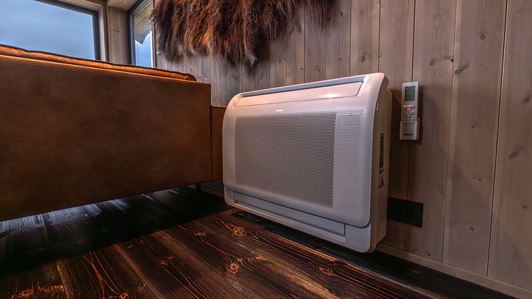 Audun: Selv i Nord-Norge kan det bli ganske varmt om sommeren. I og med at det er så mange vinduer i hytta, så blir det fort veldig varmt innvendig. Så varmepumpen kjøler jo også ned veldig bra. Den holder temperaturen nesten på graden, også på sommeren. Så den jobber veldig fint har jeg merket. Setter jeg den på 20 grader og det er steikende sol, og det normalt hadde vært 35 grader innvendig, så holder den de 20 gradene jeg setter den på.