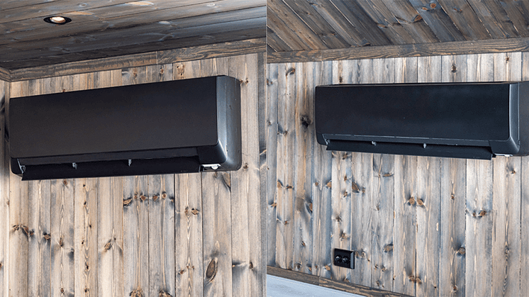 Varmepumpens innedeler er lakkert i sort og matcher interiøret