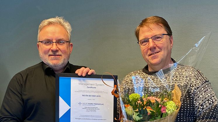Avdeling Pasientreiser i Klinikk for prehospitable tjenester ved Helse Nord-Trøndelag HF ble nylig sertifisert for kvalitetsledelse i henhold til ISO 9001, med Kiwa som sertifiseringsorgan.