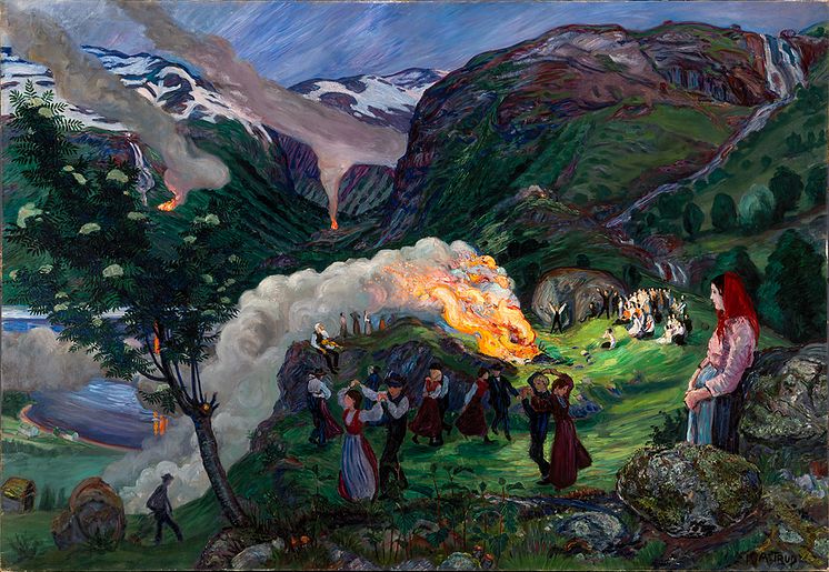 Nikolai Astrup: Priseld / Midsummer Eve Bonfire, olje på lerret, 1915