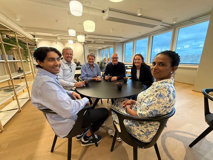 Riyaz Hamidon og Nedeesha De Silva (foran) kom til Norge høsten 2023. Bak er Aligns Per-Egil Josten, sammen med Trine Maren Skott-Myhre og Kolbjørn Stuvebakken (Kontorhuset) og Birgitte Hanstad.