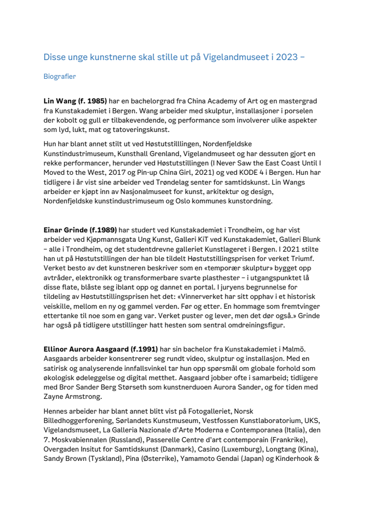 Biografier - kunstnerne til Eckbos Legat Jubileumsutstilling på Vigelandmuseet i 2023