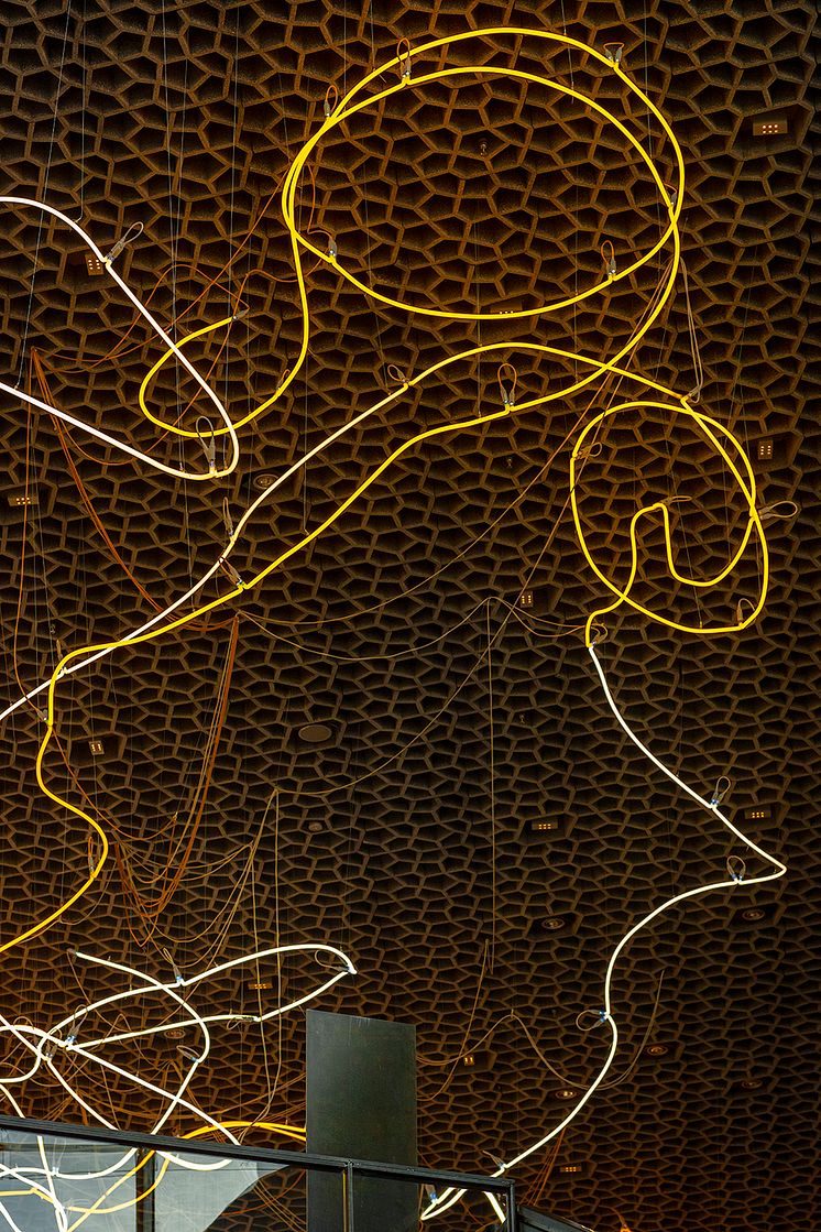 Kunstverk, neoninstallasjo i Deichman Bjørvika. Oslo kommunes kunstsamling