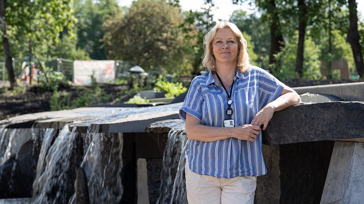 • Barn leker i bekken. Åpning av Klosterenga Park