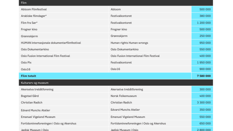 Totalt ga vi i fjor ut 359 millioner i tilskudd og stipend, mot 319 millioner i 2019. 16 millioner ble delt ut som krisepakke til profesjonelle og frivillige. Her kan du lese detaljert oversikt over hvem som fikk støtte i 2020.